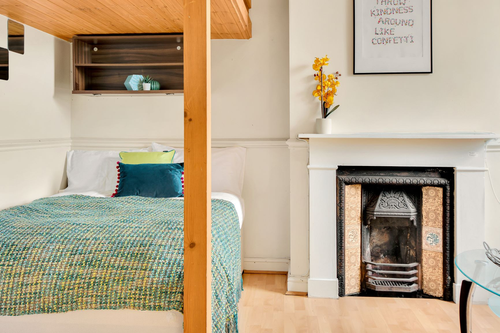 Fully refurbished luxury 1st floor studio flat, decorated to a very high standard. Large lounge with bed on mezzanine floor. Separate fully fitted kitchen with washing machine, dishwasher and cooker. Fully tiled shower room. Intercom entry system. Lovely views of park. Must be seen.