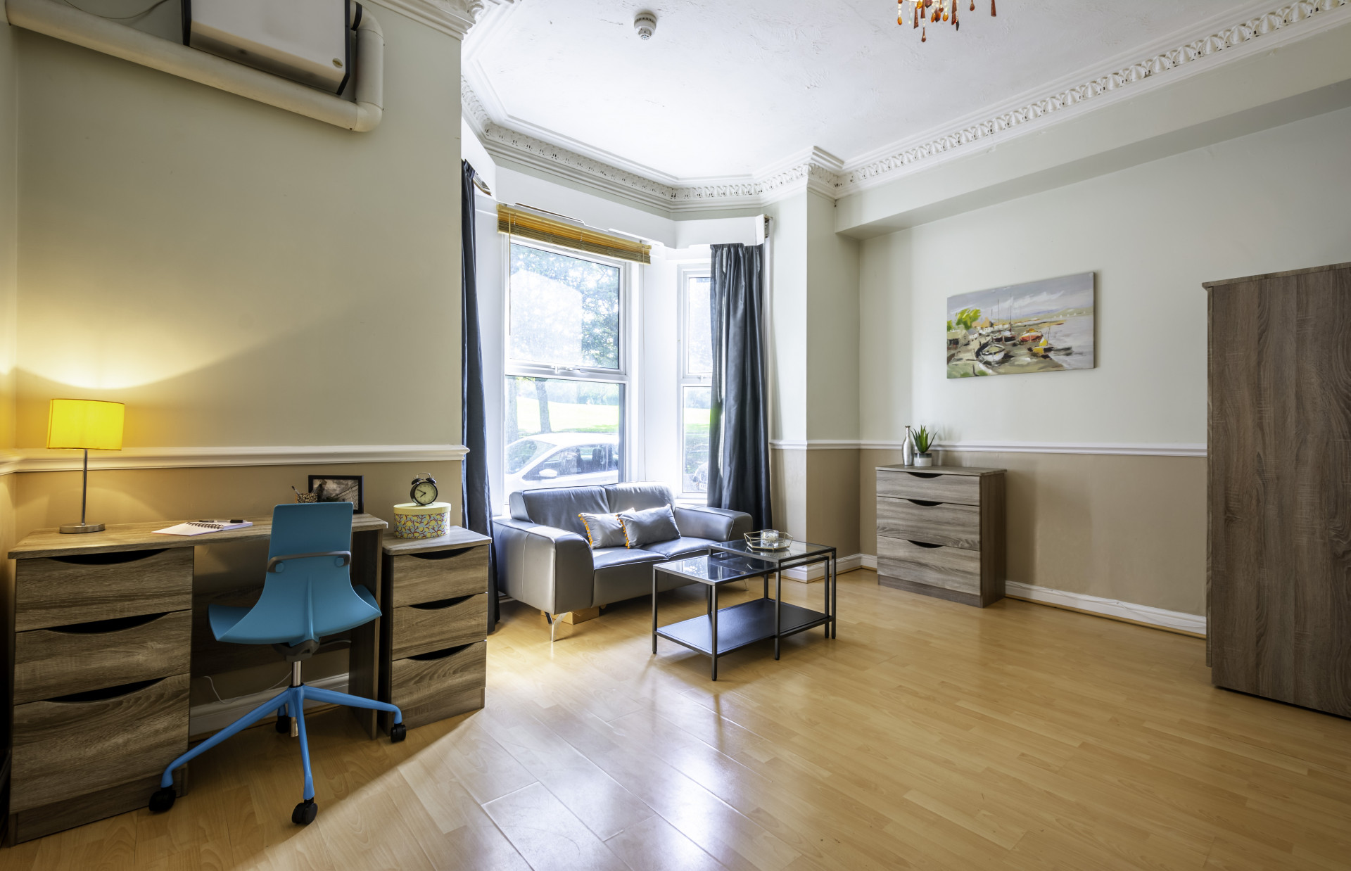 Fully furnished ground floor mezzanine flat, decorated to a very high standard. Lovely high ceilings. Large lounge with bed on mezzanine floor. Separate fully fitted kitchen with washing machine and electric cooker. Fully tiled shower room. Intercom entry system. Double glazing.