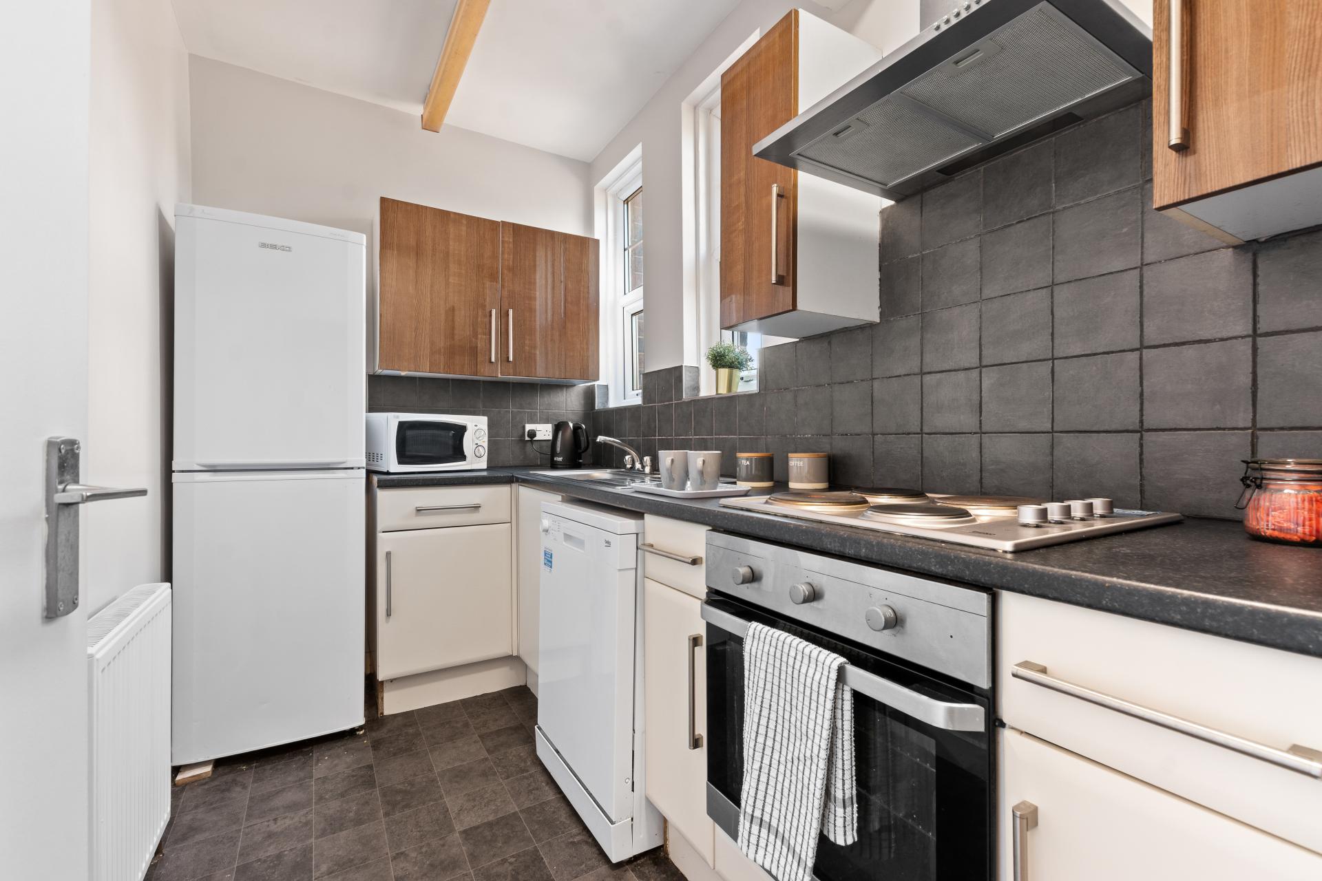 Separate fully fitted kitchen with cooker, washing machine, dryer, dishwasher and fridge freezer